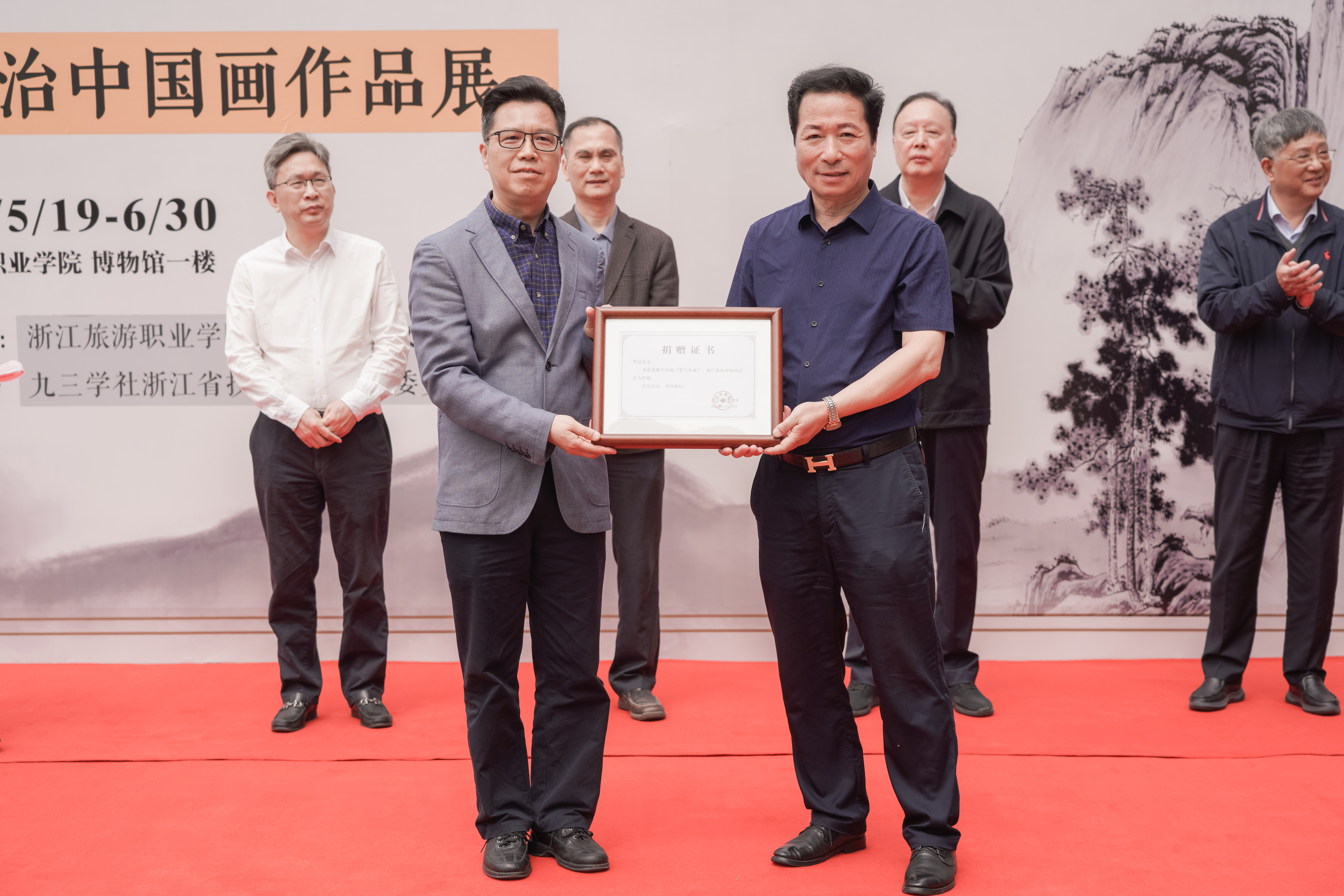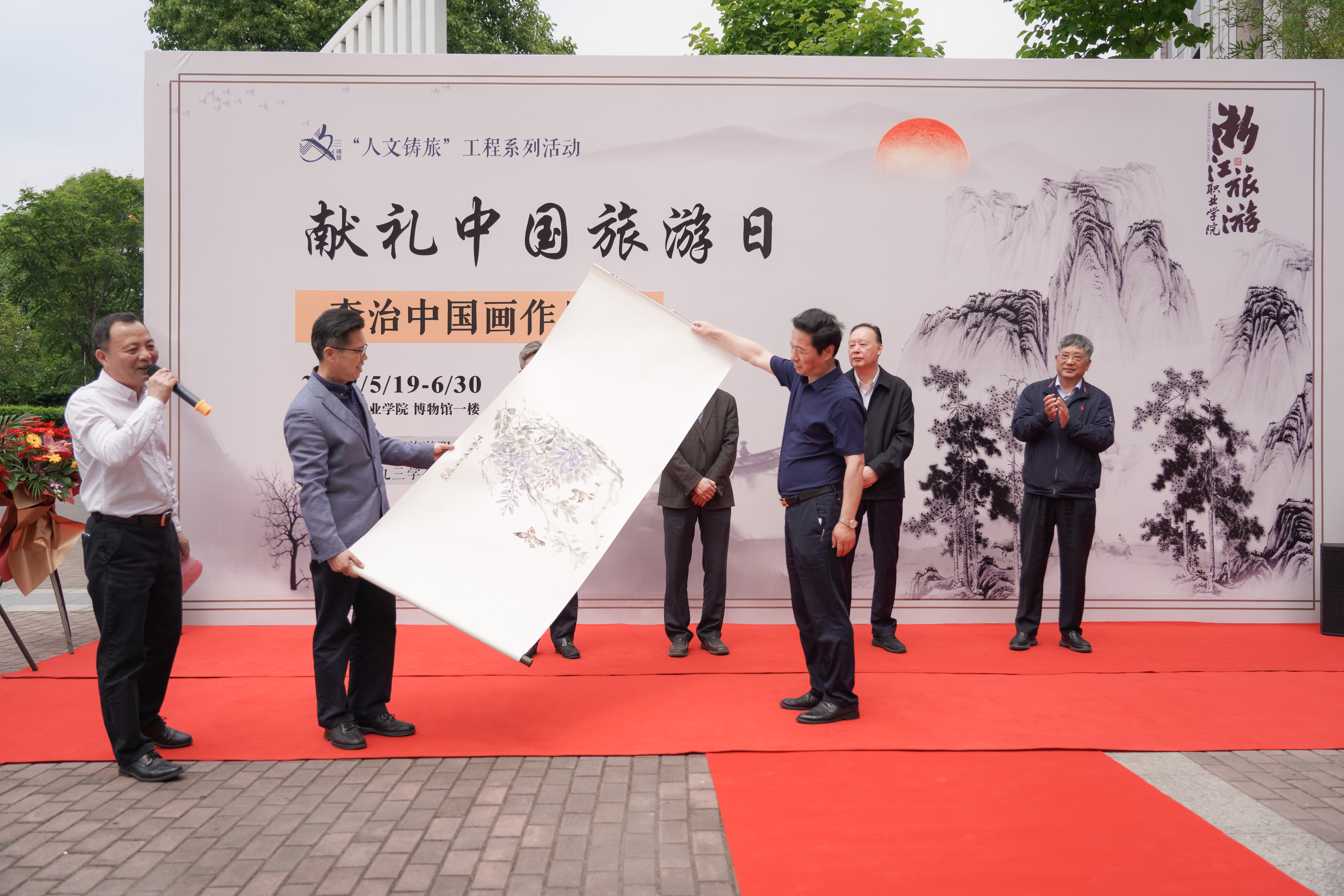"丹青歌盛世,翰墨颂和谐",5月19日,值此中国旅游日之际,由浙江旅游职业学院宣传部·人文素养中心和九三学社浙江省技术经济基层委员会主办的献礼中国旅游日·李治中国画作品展在浙江旅游职业学院举行。本次画展是一次弘扬中华传统文化的艺术盛会,也为"中国旅游日"注入鲜明的文化色彩。