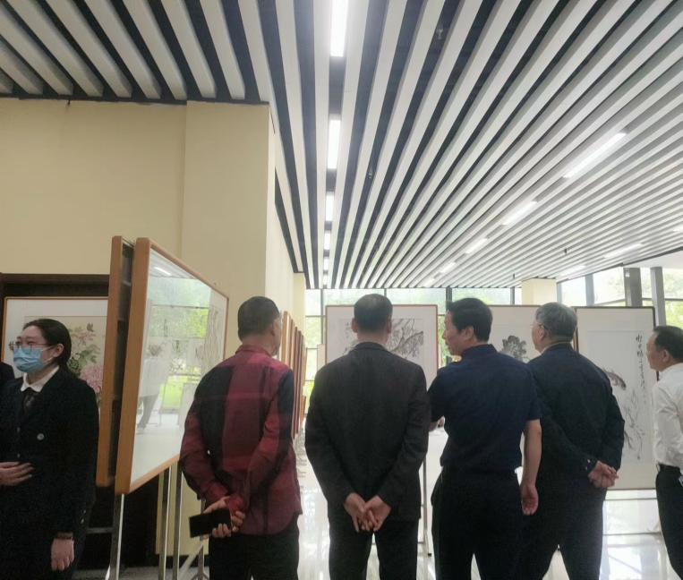 开幕式后,李治偕同各位嘉宾以及艺术学院师生们欣赏自己的画作,并向他们介绍了自己的一些画作。多年来的画艺修炼使得李治的作品形成了以北方雄放之气为骨、南方细致之意为气"的独特个人艺术风格,值得我们细细品味。