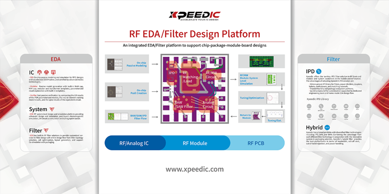 芯和半导体此次发布的射频EDA/滤波器设计平台包含EDA工具和滤波器设计两部分,覆盖了从射频芯片、封装、模组到板级的整个射频设计流程,更包含了IPD、Hybrid的滤波器技术和专为滤波器设计定制的EDA工具,详情如下: