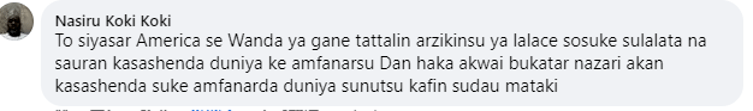 尼日利亚网友纳斯鲁(Nasiru Koki Koki)留言:“正是美国自身经济的衰退,使得它如此迫切地想要阻止其他国家的经济发展,面对美国的挑衅,中国应采取审慎的态度。”