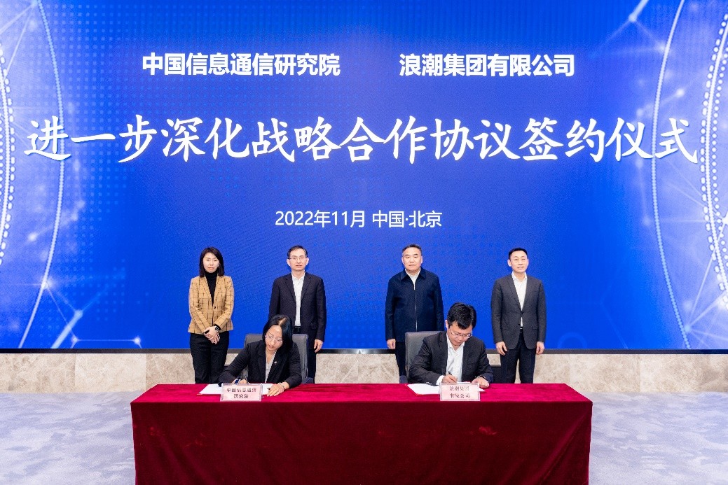 11月14日,浪潮集团有限公司(以下简称“浪潮集团”)与中国信息通信研究院(以下简称“信通院”)在北京签署进一步深化战略合作协议。信通院院长、党委副书记余晓晖,浪潮集团党委书记、董事长邹庆忠出席签约仪式,并就进一步加强战略合作交换意见。信通院业务发展部副主任刘畅,浪潮集团执行总裁、总工程师,浪潮工业互联网董事长肖雪参加活动。信通院工业互联网与物联网研究所副所长李海花与浪潮工业互联网董事、总经理庞松涛代表双方签署进一步深化战略合作协议。