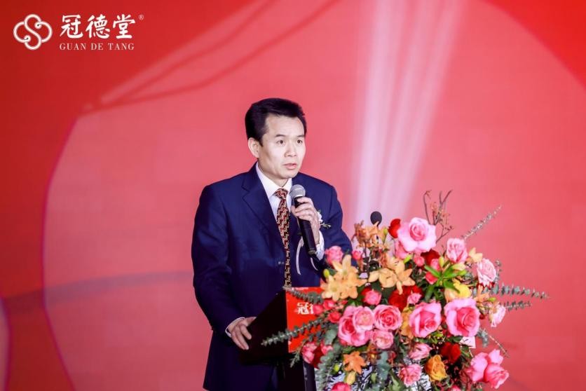 四川省川商联合会会长、中字康集团董事会主席刘国彬发言:“中字康集团与冠德堂正式签约合作,衷心希望冠德堂以登陆香港主板上市为契机,继续强化医药健康行业核心竞争力,在中医技术服务领域有更多作为,为国民健康贡献更多力量。”