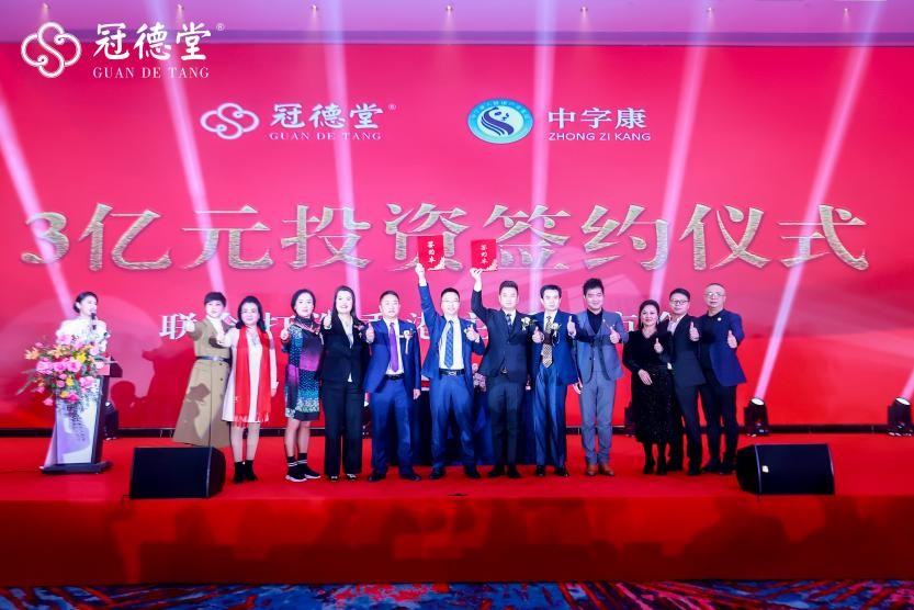 在盛会中,冠德堂董事长周铭毅与中字康集团董事长杨应斌签署了3亿元投资协议,两家集团强强联手,联合借壳打造香港主板上市公司。本次合作进一步壮大两个集团核心动力,全面带动中医药产业提档升级,推动大健康产业向更高质量迈进,夯实可持续发展的基础,为以后巨大的腾飞做出了有力的支持。