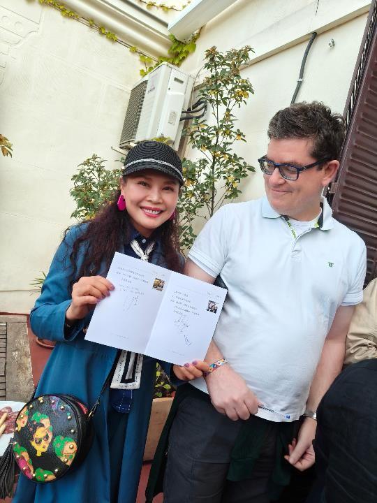 接下来她参观了索罗亚故居博物馆,很荣幸由索罗亚的曾孙女法比奥拉.阿尔玛扎.洛洛特.索罗亚教授亲自陪同全程详细解析展品,让她更深刻地理解了艺术的内涵和力量。艺术不只是流于表面,在历史长河中,艺术的传承也润物细无声般滋养了人们的身心,提高了人们的审美以及文化艺术素养。当她看到百年前画中庭院里的鲜花如今依然盛开,不由得感慨,这艺术之花经由古今中外艺术家的共同灌溉,早已深种在了人们的心里,现在能够来到这里交流学习,他们心中的艺术之花已然盛开。著名画家索罗亚已经是西班牙的国宝,他的画作一百多年后依旧那么明媚动人。