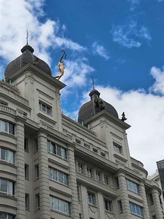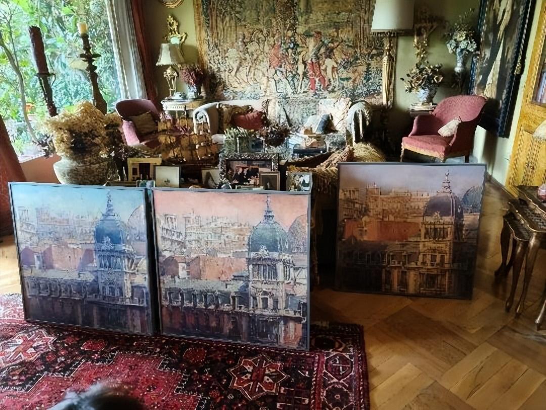 随后受到著名艺术家路易斯.哈维尔加亚先生的邀请来到位于格兰大道尽头大皇宫对面的家中,在路易斯家中可以俯瞰整个大皇宫的巨行穹顶,沿途从格兰大道步行到路易斯的工作室,他向我们详细介绍了格兰大道上的建筑物,路易斯先生四代公爵,他是建筑师出生的画家,所以画风严谨,着色特别高级。