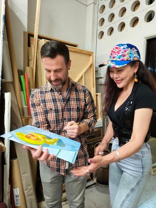 随后她来到了马德里,在风情万种的格兰大道上参加了中西艺术家沙龙酒会,受到了路易斯.哈维尔加亚先生及经纪人收藏家和评论家的热情款待,并开展了交流座谈会。艺术家们对艺术的热情仿如烈火,探讨古典绘画和当代艺术的话题绵绵不断,中西艺术家们开怀畅饮,杯中的美酒令人沉醉。他们的作品感人至深,这一切都十分令她印象深刻,现在回忆起来,仍能记起那份感动。