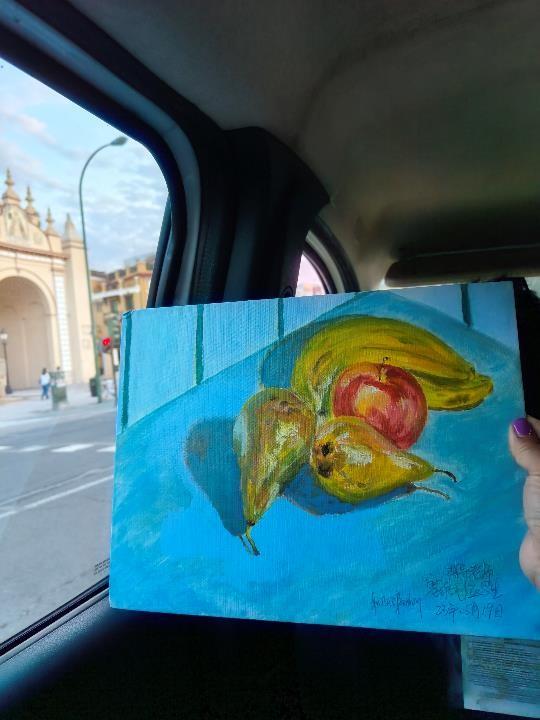 和安东尼奥老师一起在西班牙广场写生以及在安东尼奥工作室的写生经历也让徐嘉敏收获颇丰。安东尼奥老师为国宝级画师洛佩兹的得意门生。徐嘉敏的风景写生作品和静物作品受到了安东尼奥大师的欣赏和肯定,他认为徐嘉敏画作有着非同寻常的个性风格,色调鲜明独特,用色极为大胆奔放;而他的肯定和提点让她在创作上有了新的突破,感受到虽然仅是普通的水果静物,要真正达到大师级的水准,也是内有乾坤。