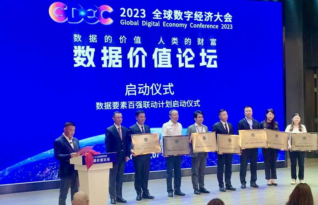 中国价格协会数据价格委员会宋晓伟会长为北京易华录、大成律师事务所、盈科律师事务所、深圳数据交易所、贵阳大数据交易所、中企华评估公司、金联创公司等单位颁发“数据百强联动计划单位”牌匾。数据价格委员会副会长兼秘书长李晓坤宣读《数据百强联动计划倡议书》。