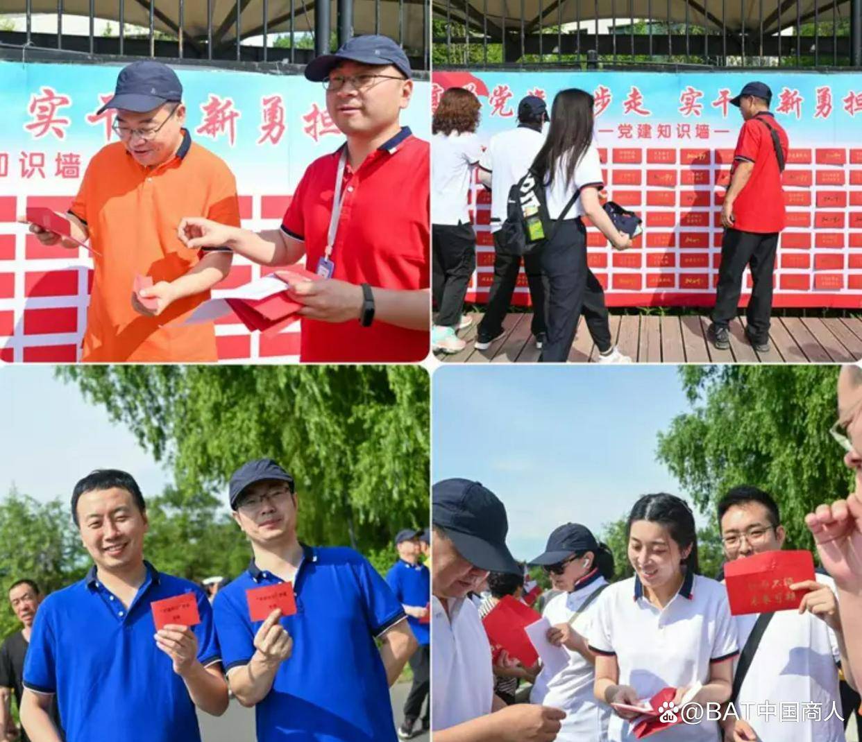 员工积极参与徒步活动中的“党建知识墙
