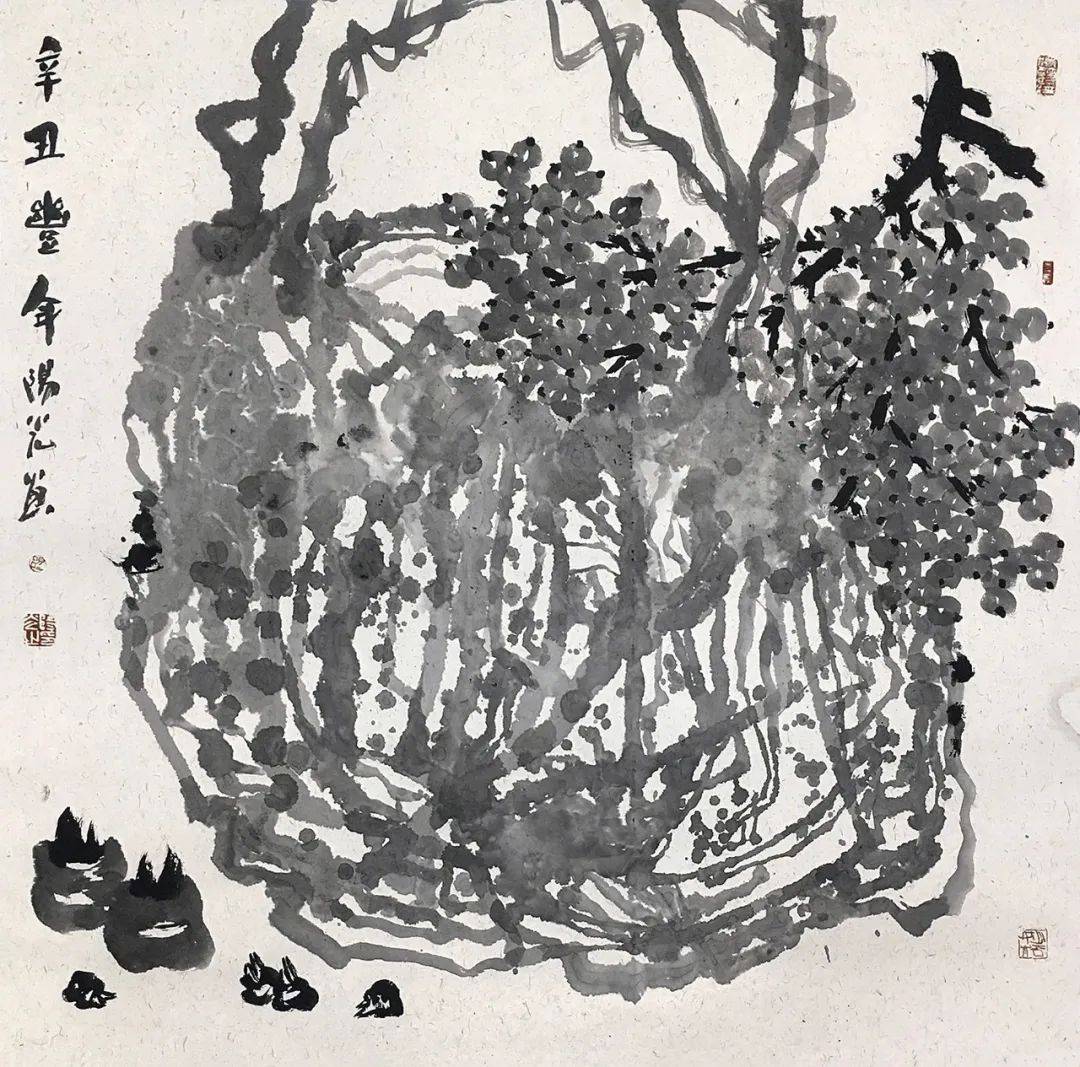 阳光的“古树”系列作品,纯水墨、不着色,满纸老干嫩枝、藤蔓缠绕,原有的山水那种“芦笛逸清音”般的印象,在这里变为重如沉雷般浑茫与浩思。在创作中,阳光将干湿浓淡自由挥写,尔后用墨点苔痕,用水冲撞,勾写与泼染结合,透出“笔晕墨章”的华滋——以古树为代表,进一步呈现出山非山、树非树、石非石、花非花的物象表达,构成了具有现代性的语言图式——阳光画的不是漓江所见到的某种树的品种和外形,而是呈现漓江两岸古树的总体精神和气质,所以称之为“古树之气”,也是时代之气。