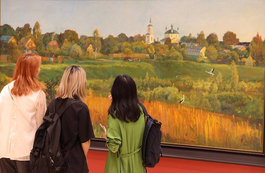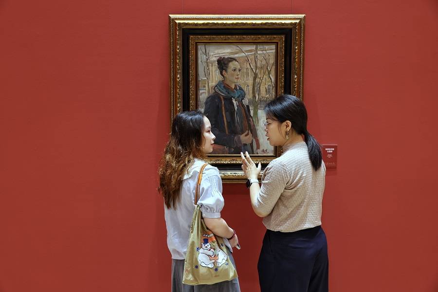 9月19日,观众在欣赏画作《旅俄芭蕾舞女教师》。中国日报记者 姜东 摄