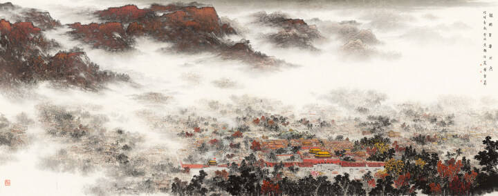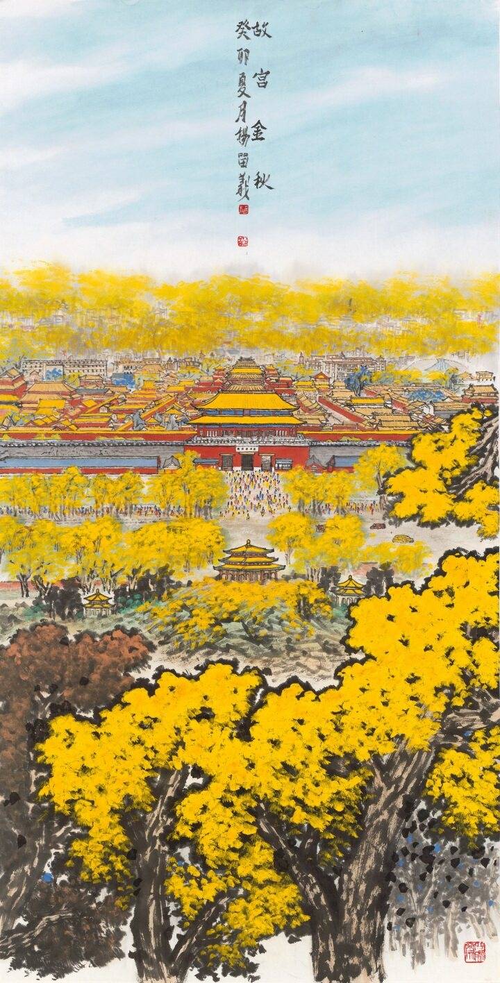 在古都北京的中心,有一条全长7.8公里、南北走向的“标尺”,标注着中国发展的进度,犹如脊梁一般支撑着城市发展——北京中轴线。它是一条与城市设计有关、实际存在的线,更是一条在想象中与历史文化有关的、抽象的线。随着2022年8月“北京中轴线”成为我国2024年世界文化遗产申报项目,北京中轴线上的历史、文化与自然风光,更吸引了杨留义的目光,并精心创作了一系列以北京中轴线为主题的城市山水画作品。
