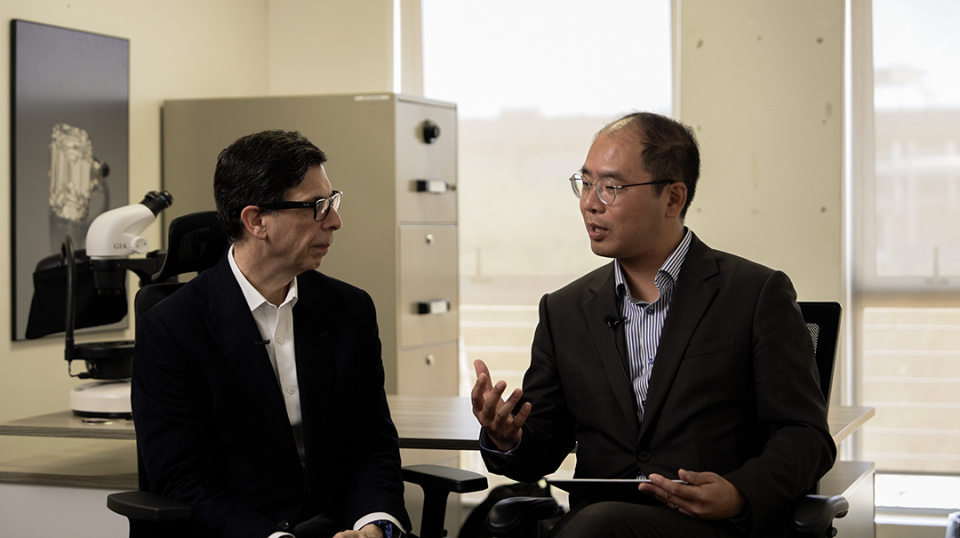 GIA美国宝石研究院执行副总裁兼首席鉴定所和研究官Tom Moses(左)