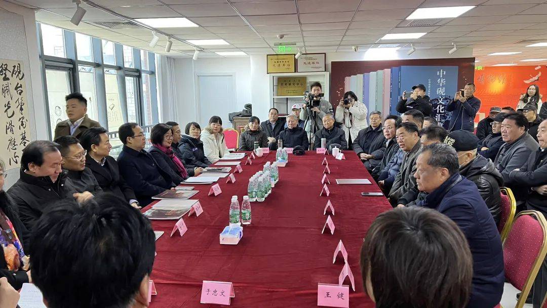 挂牌仪式上北京市有关领导对博物馆进行了验收并现场座谈,砚研会秘书长阴巍主持这次活动。