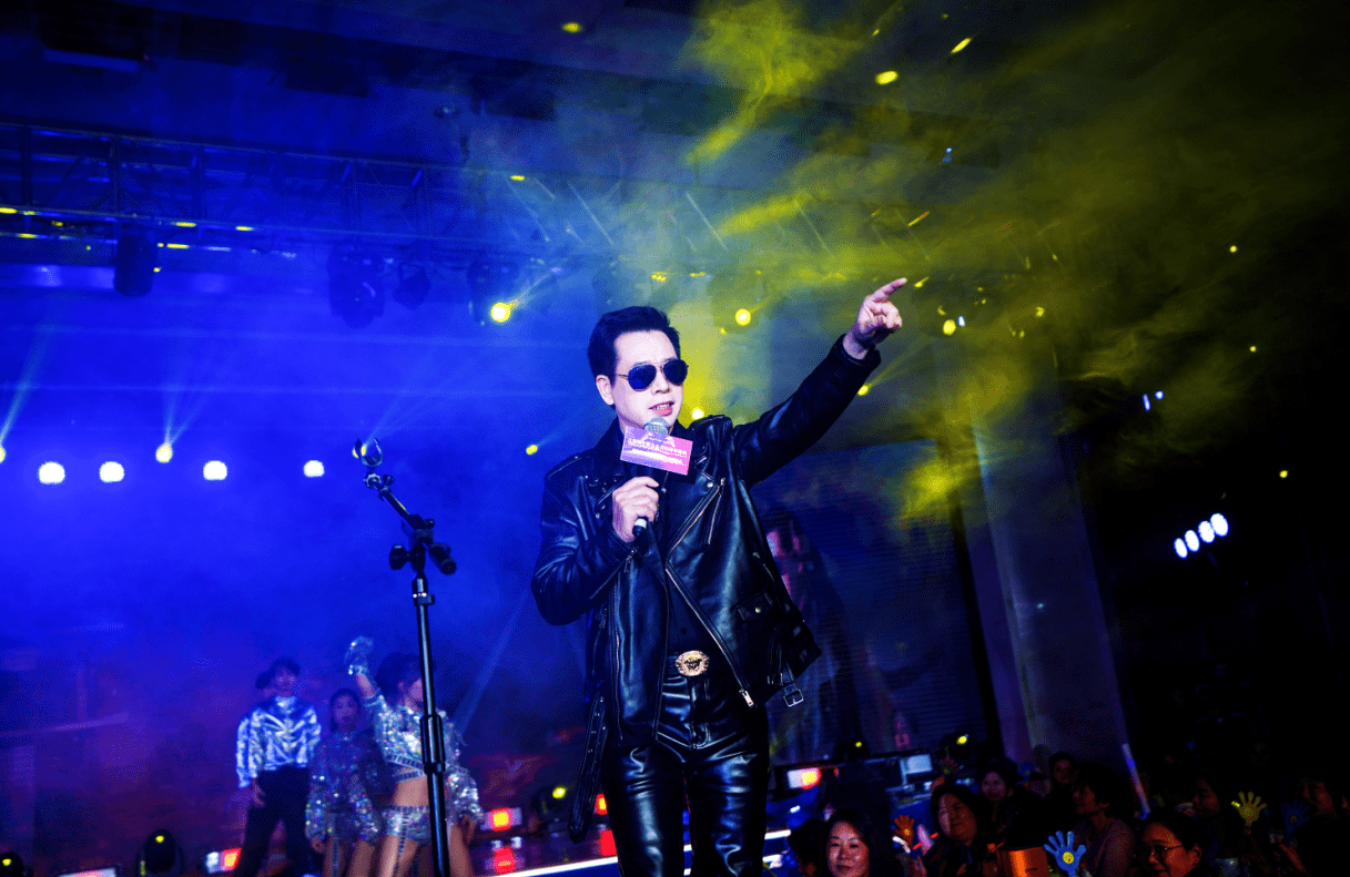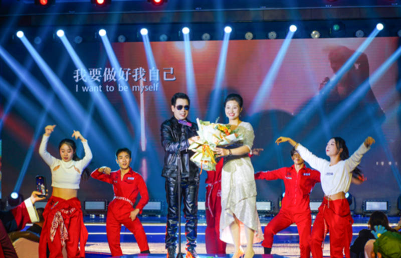 百莲凯桐城旗舰店总裁姚聪慧登台献唱,表现不凡,一首《陪你拥抱这个世界》温暖人心,不乏激情,台风和歌声赢得全场掌声,完美展现了百莲凯集美貌、智慧和才华于一身的现代女性风采。