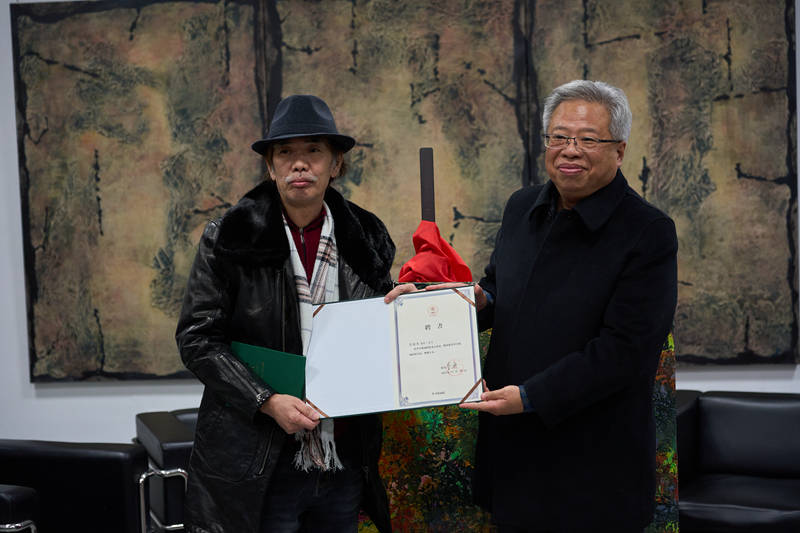 李可染画院副院长西沐为艺术家苏谢伟先生颁发李可染画院研究员聘书