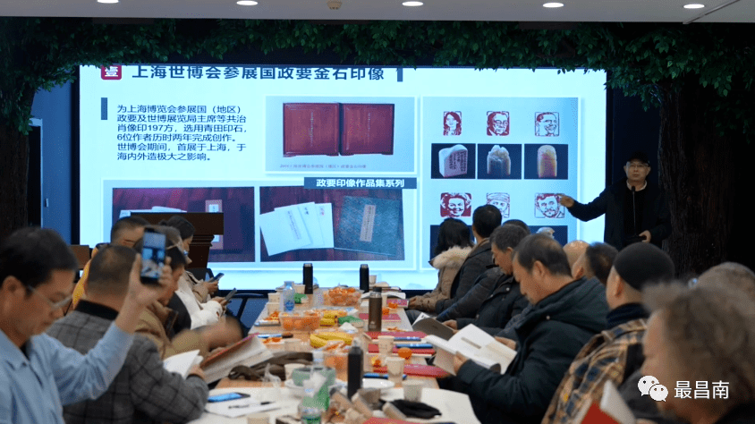 近日,2023年中国肖像印研究会年会在景德镇十大瓷厂博物馆报告厅举行,来自全国各地的肖像印创作精英汇聚一堂,会议听取了中国肖像印研究会执行会长章子峰所作的《工作报告》,回顾了中国肖像印大事记,总结了去年一年的工作,并选举产生了第二届新班子成员。据介绍,肖像印是篆刻艺术的重要门类,中国肖像印研究会是以肖像印为研究对象的印学团体,旨在弘扬传播传统篆刻文化。