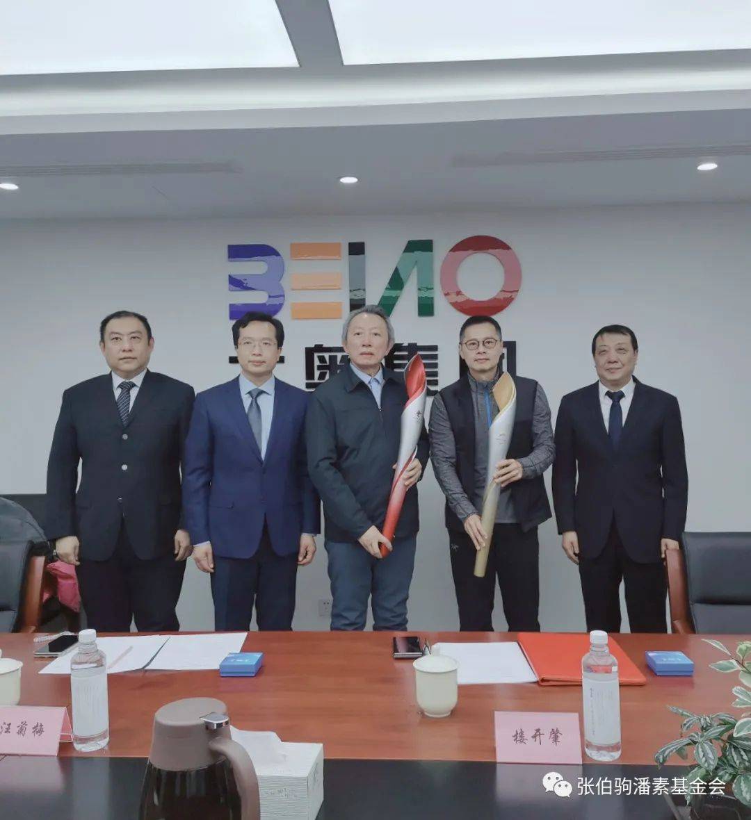 会议过程中双方领导互相介绍各自业务开展情况,仪式期间基金会理事长楼开肇向北奥集团赠送由潘素先生于1964年绘制的《征服希夏邦马峰》(复刻版)一副。北奥集团党委副书记、总经理刘辉向基金会赠送北京2022年冬奥会和冬残奥会火炬各一支。双方共同表示,战略合作协议的签署将扩展两家机构在文化领域的合作空间,推动传统艺术向大众新领域的深入传播。