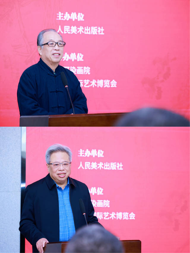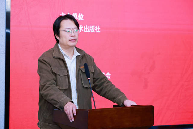 活动中,人民美术出版社副总编辑王远的发言主要阐述了大红袍的历史渊源及各种标准。她指出《中国近现代名家画集》由人民美术出版社编辑出版,因宏大的选题规模、严整的出版规制、高品质的作品甄别标准以及中国红的烫金函套,被业界赋予“大红袍”的誉称,其中收录的画作被认为代表当前中国绘画的最高水平。“大红袍”是国家重点美术出版工程,从1993年9月至今,已有30年的出版历史。