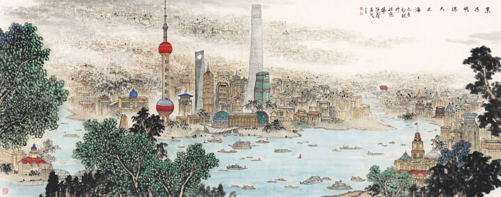 据了解,此次画展共展出了杨留义多年来精心创作的城市山水画作品50余幅,其中有表现广州印象的《广州吉祥》,反映雪域高原的《天骄西藏》,体现香港发展变化的《十载辉煌》,展现郑州新区面貌的《中原古都换新姿》,刻画燕赵大地的《祖国首都——北京》《燕山揽胜》《燕山脚下马营子》《大美承德》,以及展现不同城市风采的《旭日东升 大美青岛》《古都西安》《澳门吉祥》《东方明珠大上海》《祖国宝岛台湾》等,这些作品均反映了祖国大好河山与现代化不同城市文化建设相结合的大格局、大气象、大境界。