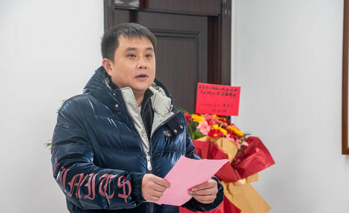 著名城市山水画家、北京城市山水画研究会会长杨留义在揭牌仪式上致答谢词