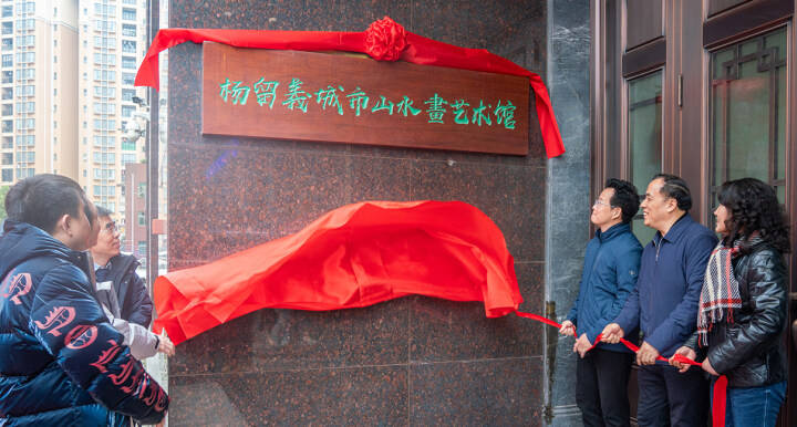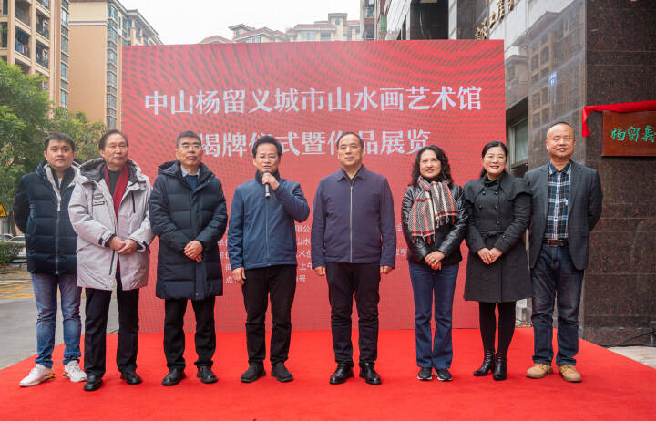 在活动现场,林锐熙、孟祥宁、何新阁、陈江梅、杨留义、梁振强共同为中山杨留义城市山水画艺术馆揭牌。