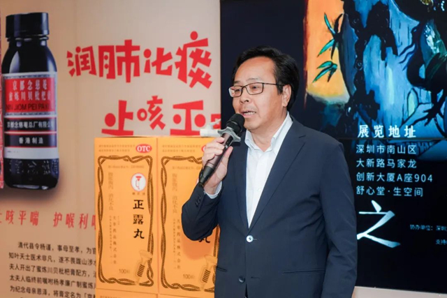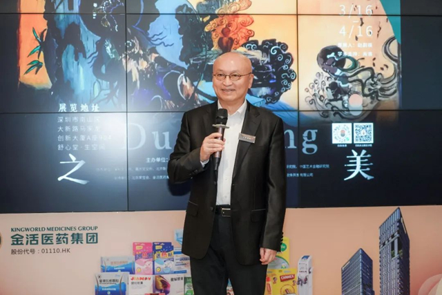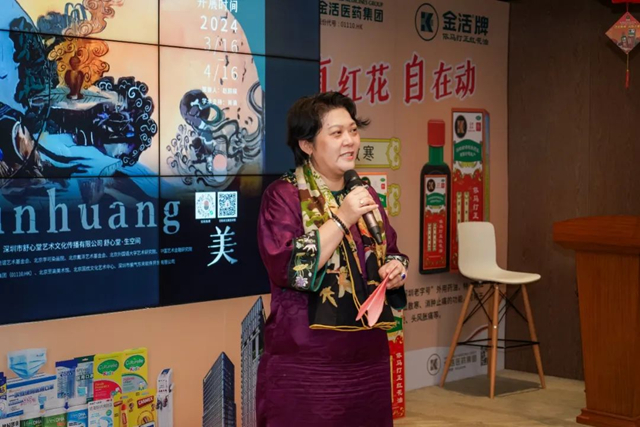 舒心堂堂主、金活医药执行董事陈乐燊女士致辞中提到:舒心堂·生空间携手宁强教授举办了教授的大湾区首次展览,宁强教授作为国家教育部“长江学者”,他发表的关于敦煌艺术的论文将会让人们对敦煌石窟中的艺术有更深刻的理解。敦煌石窟艺术作为中华传统文化的瑰宝,我们举办这样的一个展览不仅是为了表达与展示,更是宁强教授对敦煌艺术文化的研究与弘扬。本次展览展出宁强教授近年来的精心创作,与传统敦煌壁画相比,用色更加大胆,有着丰富的色彩表现力,不仅凸现了敦煌壁画原有的时代特征,更展现出其特色的艺术风格,它的线条简练而轮廓分明,让人耳目一新,原来石窟壁画可以用这样的表达方式。宁强教授以个人的独特视野将百年的历史作品带入了现代,让我们一同融入了敦煌石窟的历史之中,期待各位现场的朋友能够亲身感受到这份传承百年的文化底蕴。最后让我们一起祝愿敦煌之美:宁强教授大湾区画展开幕顺利,并祝各位来宾有着赏心悦目的午后。