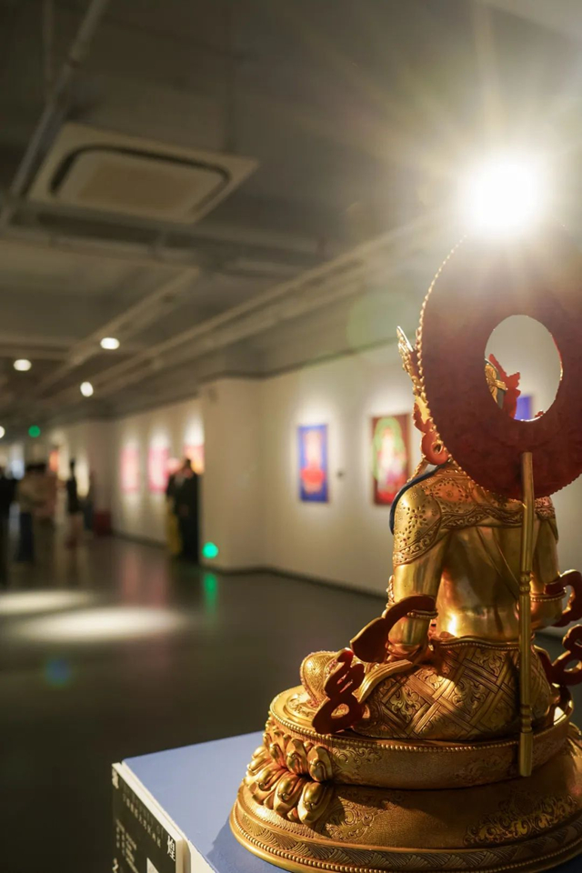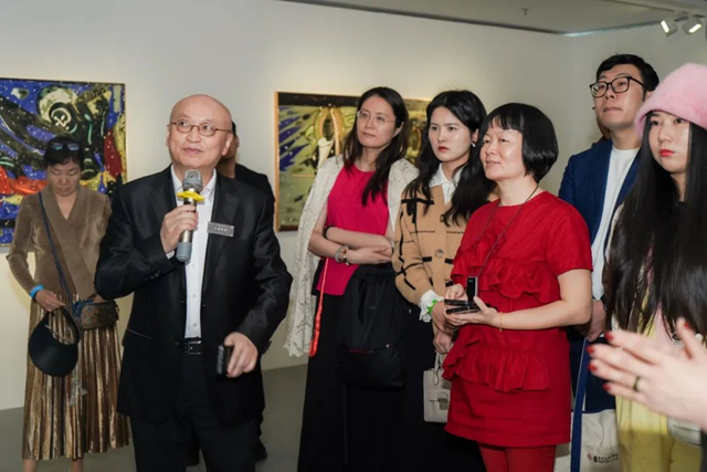 宁强教授致辞北京外国语大学艺术研究院院长,硕士、博士研究生导师、教育部特聘长江学者、北京靳尚谊艺术基金会学术顾问、深圳文交所艺术顾问、敦煌学专家、著名画家宁强教授致辞中提到:因为与蔚瑛(策展人:赵蔚瑛女士)的师生缘分,第一次来到中国的南方-深圳举办画展。我的家乡在四川乐山,有着中国最大的一尊乐山大佛,又因与敦煌的佛缘,在敦煌从事了好些年的研究,后来去到了哈佛,“哈佛也是佛”,我这辈子都与“佛”连接到一块儿去了,我们不一定那么沉浸式的信仰宗教本身,但佛教文化已经融入了我们中华民族文化的整个历史长河,所以佛教的价值,还有对人生的帮助,我是深感获益无穷的。本次展出的这些作品大多数都是以敦煌壁画的佛家艺术作为灵感来源,进行的一种再创作,我的愿望就是把古老的敦煌经典带入我们当代的社会,带入大家的生活,才能为古老的艺术注入新的活力,共同欣赏敦煌之美。
