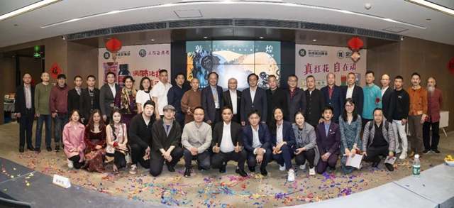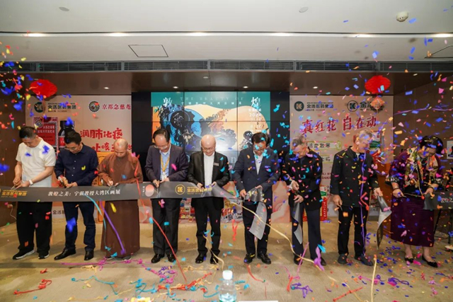 嘉宾为展览进行开幕剪彩 16日下午,由舒心堂· 生空间主理人、金活医药集团董事长助理赵蔚瑛女士对本次展览进行开幕主持,肖浪老师作为本次展览的学术支持。其中由北京外国语大学艺术研究院院长、硕士、博士研究生导师、教育部特聘长江学者、北京靳尚谊艺术基金会学术顾问、深圳文交所艺术总顾问、敦煌学专家、著名画家宁强先生,深圳市委原常委、宣传部部长李小甘先生,深圳市美术家协会主席、关山月美术馆馆长陈湘波先生,广州市佛教协会副会长、雁塔寺方丈法成方丈,深圳市政协常委、梵思诺时尚集团董事长、潮青会主席陈国雄先生,龙游深圳商会会长林信军先生,洛阳商业职业学院理事长晋爵先生,金活医药集团董事局主席赵利生先生,舒心堂堂主、金活医药执行董事陈乐燊女士,为展览进行开幕剪彩,他们和现场嘉宾共同见证了本次展览的开幕。