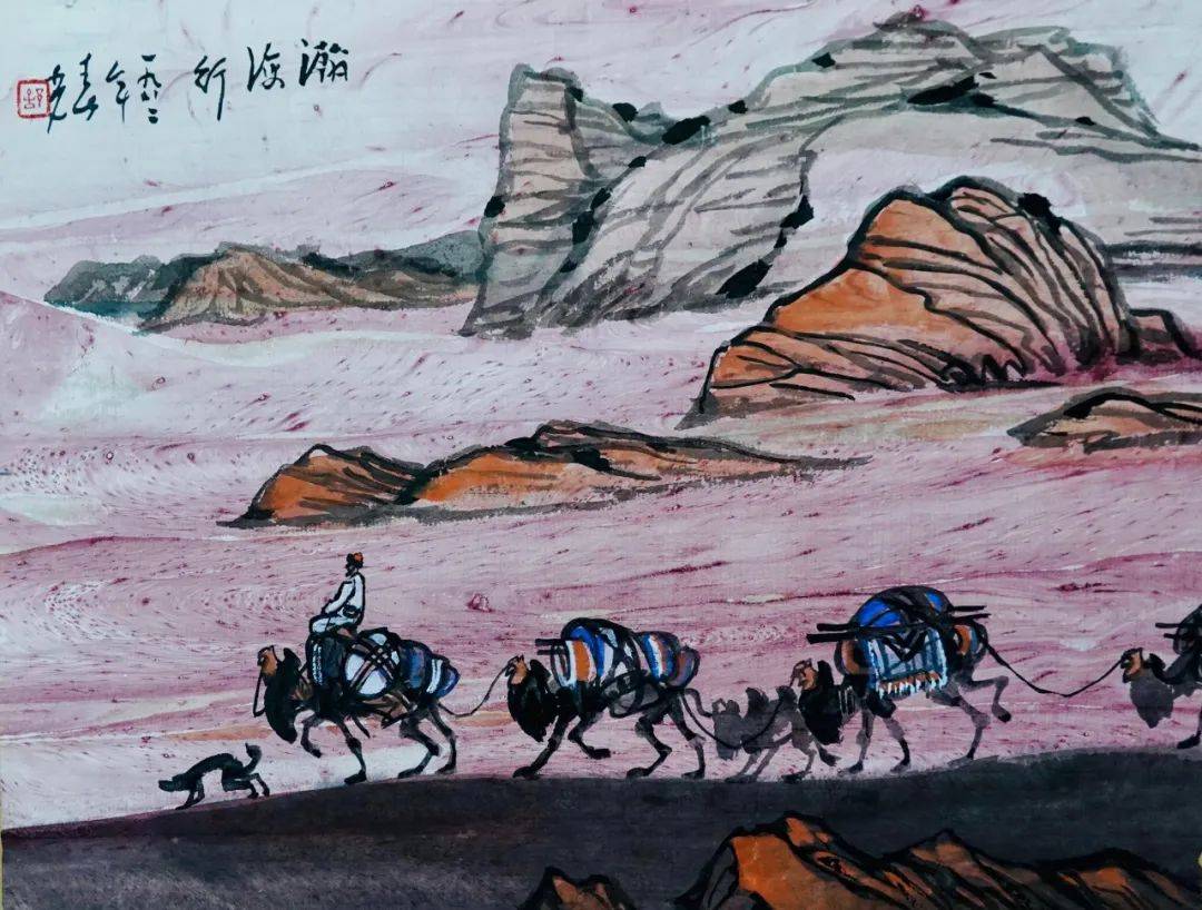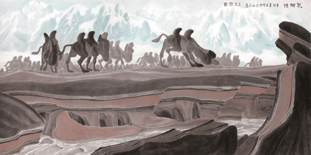 由美学变化上来看,现当代艺术思潮倡导打破边界,艺术家本体与何为艺术作品的概念也在不断被突破与重构。20 世纪向 21 世纪的跨越中,传统中国画发生现代化转型,舒春光的创作力求会通中西,大胆融合了多门类艺术的综合技法,重视光感、色彩感、肌理感和层次感,注重写生,从而创立了自己的风格,将西域边塞绘画表现推向了时代新高度。