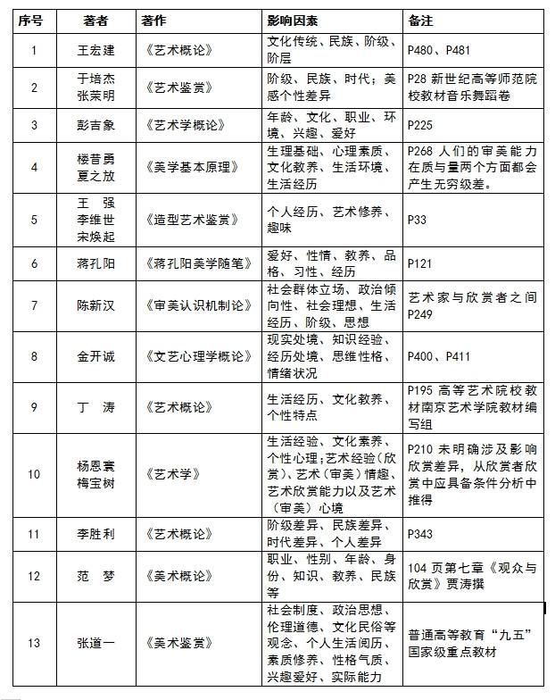 下面是关于欣赏差异影响因素的归纳,同样能归入这两个范畴。(见附表)