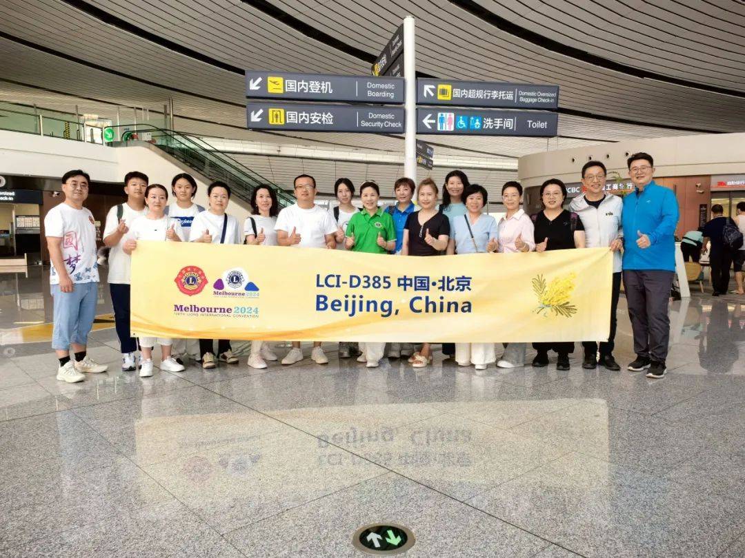 而此时此刻,北京首都国际机场与北京大兴国际机场,出征106届墨尔本国际年会的狮友们在刘海雁候任主任的带领下已经齐聚机场出发厅,北京代表处候任第一副主任李恒源、候任关爱委员会主席赵刚带队前往送行。
