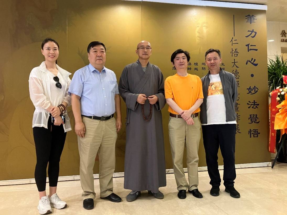 刘理事长携观展嘉宾与艺术家仁悟法师和策展团队成员留影