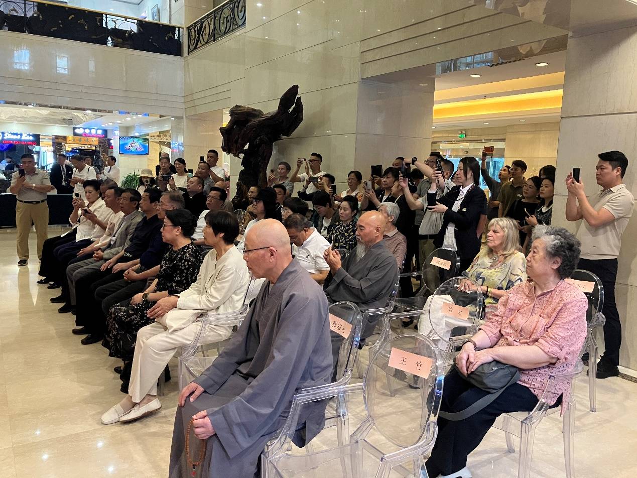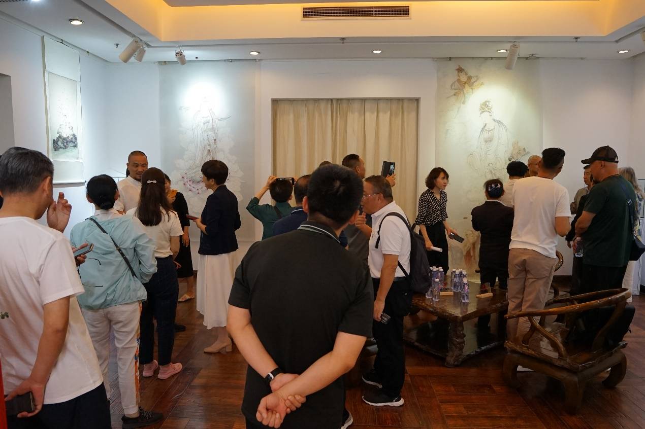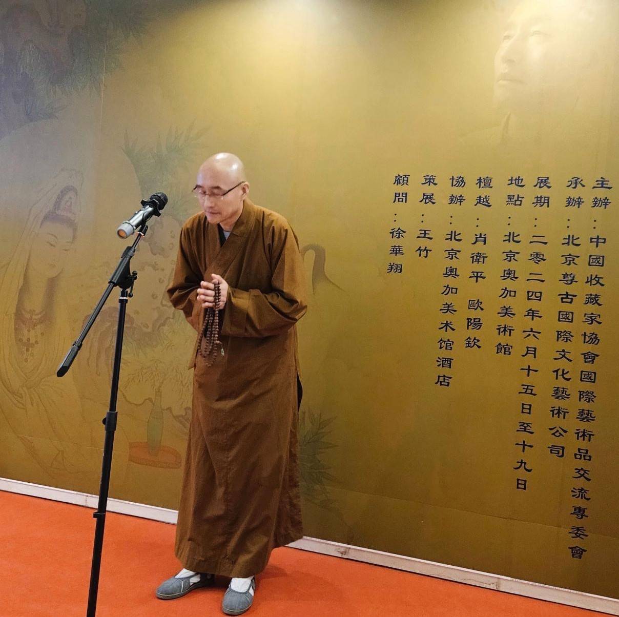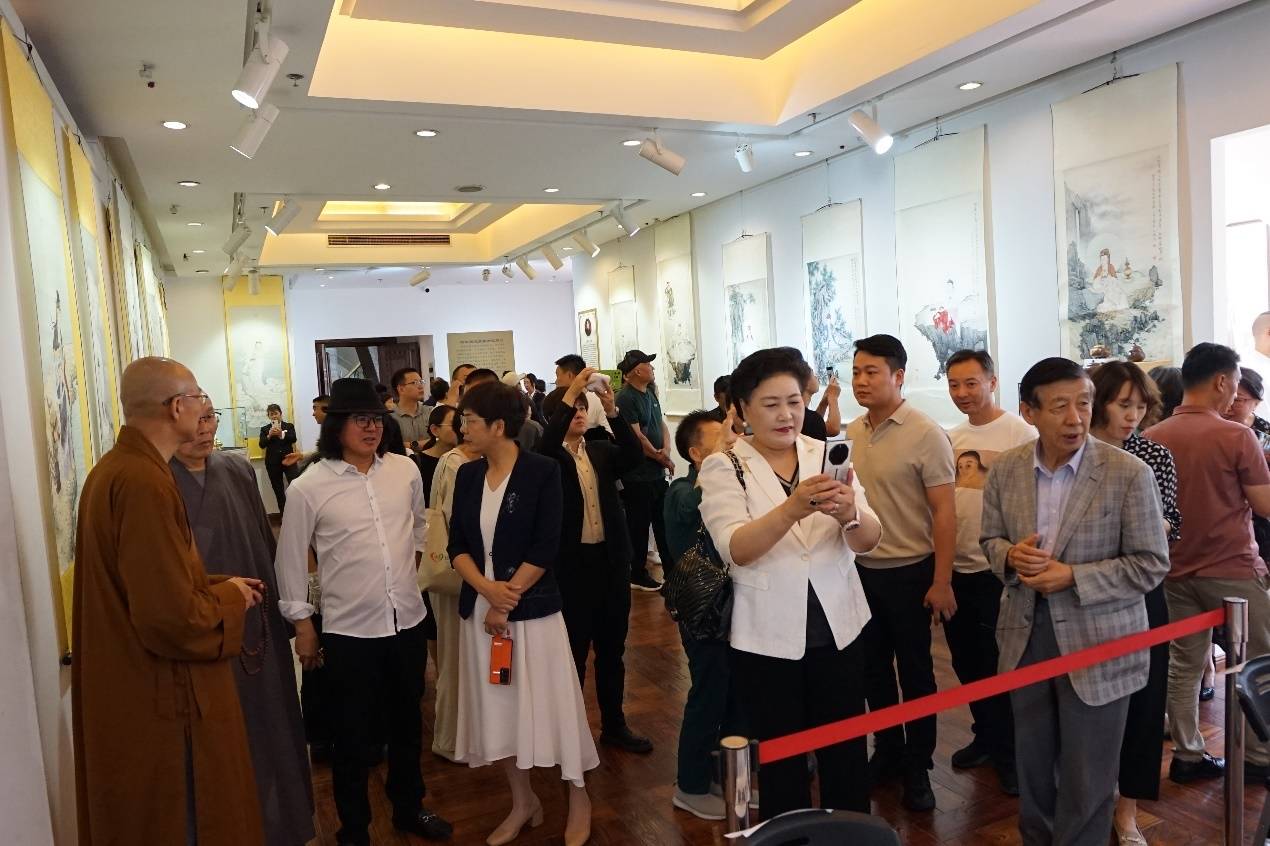 荆山画院主理人夏圭君女史在开幕致辞时,回顾了夏老居士创办画院的心路历程,称绘佛是神圣超俗的艺术,对于释仁悟继承乃师遗志、传承禅画法脉的笃行善举给予高度评价!是展顾问徐华翔先生简述了活动缘起和举办的初衷,仁悟法师答谢词以佛教艺术的诚心为国家献礼、为民族祈福,并感谢来宾炎炎夏日汇聚于此的隆情厚意!