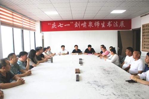 翰墨颂党恩,丹青绘华章。为庆祝中国共产党建党103周年,弘扬党的优良传统,展现新时代的精神风貌。6月30日,由枣庄市电工产业商会主办,市中区龙山街道商会承办,枣庄市天衢书画院协办"庆七一 颂党恩"庆祝中国共产党建党103周年刘啸泉师生书画作品展在天衢书画院隆重举行。枣庄市工商联党组副书记、副主席龙翼天,中国书法家协会会员、国家一级美术师、枣庄市天衢书画院院长刘啸泉,枣庄市电工产业商会会长李伟,枣庄市电工产业商会副会长、市中区龙山街道商会会长刘勇等领导嘉宾出席。