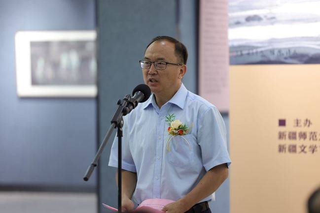 开幕式上,刘俊代表学校党委致辞,他表示舒春光先生的作品继承了中国传统绘画“壮美”意境的表现,既强调了中国画的民族特征,又有形式感和笔墨风格上的新创造,反映了大美新疆、大漠风情与民族团结。此次艺术展览的作品思想立意之深、造型刻画之美、形式语言之新,也彰显出舒春光先生爱国精神的大爱追求,为新时代中国美术事业的发展和新疆的美术事业做出了重要贡献。新疆美协副主席褚晓莉代表新疆国画家群体,对舒春光先生的作品进行了深度解析,并号召新疆国画青年人才要围绕大美边疆,讲好新疆故事为主题,创作出新时代本土的精品力作。