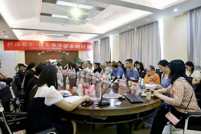 随后舒春光书画学术研讨会在新疆师范大学美术学院二楼召开,众多专家学者围绕舒春光书画艺术特色及审美精神进行了研讨,原新疆美协中国画艺委会主任康书增教授,中央民族大学王建民教授,新疆美术家协会艾力江副主席,中国传媒大学舒怡教授以及美术学院教师就舒春光教授的大漠山水作品从笔墨立意、技法创新、以及时代精神等方面做了精彩发言。