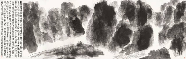 “第三个特点,我感到震撼的是他具有驾驭超大作品的超强的结构化超能力。画画的人都知道,由于材料和工具的原因,中国画,尤其写意画,画大画很难,画超大的画更难。前几天,他把新创作的《红旗渠》发给我看,其超大的尺度和超大的气势把我震了一下。我心想,这得要有多大的勇气、多大的自信、多大的功力、多大的控制大局的能力,才能完成这样的作品啊!伟玺就有这样的本事,这一点让我很佩服。