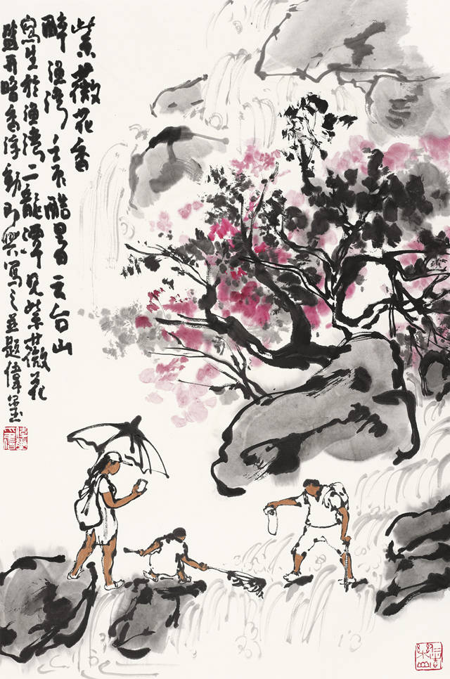 顾伟玺作品《渔湾写生之紫薇花香》70cm×47cm 2012年
