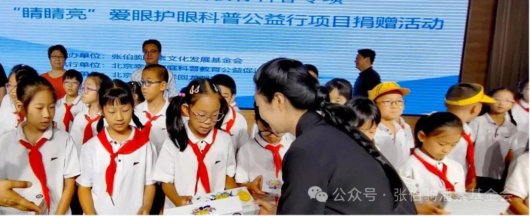2024年6月张伯驹潘素文化发展基金会面向全社会发起了校园“睛睛亮”爱眼护眼科普公益行捐赠活动。旨在鼓励学生在积极刻苦学习获取文化知识的同时,倡导儿童青少年爱党、爱国家、爱社会主义,好好学习,天天向上,努力拼搏争做德育新时代最强人的同时,一边用眼一边科学护眼的理念,提升近视防控意识和认知。社会、学校、儿童青少年三方行动起来协力做好近视防控,为党和国家人才辈出,为儿童青少年努力拼搏学习用眼护眼保驾护航。