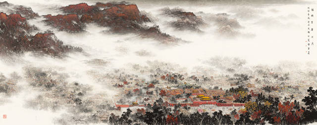 在本次展览的北京中轴线主题系列作品中,杨留义集中展现了“北京中轴线”人文景观与自然景观完美结合的雄浑博大,反映出艺术家在提炼生活后的迁想妙得,充分体现了杨留义“让创造弘扬传统、让山水融通城市”的城市山水画创作理念;亦重现了“北京中轴线”的文脉特色与非遗风韵,唤醒了欣赏者有关北京城更多维度的感受。