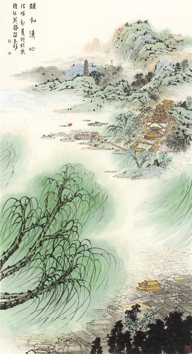 作为中国城市山水画的开创者,杨留义以其深厚的艺术功底和对北京的深厚感情,创作出了一系列令人叹为观止的北京中轴线题材城市山水画作品。这些画作不仅再现了北京中轴线的雄伟与美丽,更融入了艺术家对这座城市历史文化的深刻理解。从永定门的庄严到钟鼓楼的古朴,从故宫的金碧辉煌到颐和园的秀美风光,每一幅作品都仿佛带领观众穿越时空,亲身体验北京的古老与现代。他的画作不仅捕捉到了中轴线上建筑的雄伟与精致,更将自然风光与人文景观和谐地融为一体,展现了一种独特的城市山水美学。这种美学既是对中国传统山水画的继承与发展,也是对现代城市风貌的深刻洞察与表达。