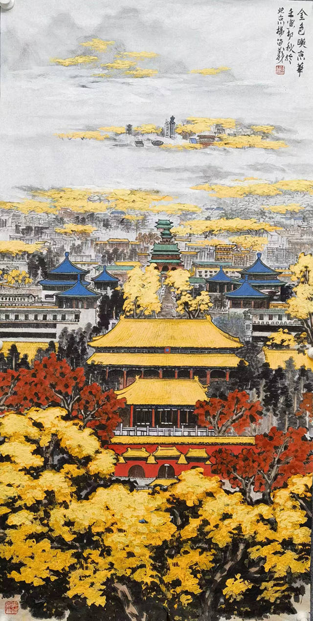 此次画展旨在呈现杨留义用绘画解读城市生态文明的艺术理想,充分打造出人文与自然结合、让自然拥抱城市的艺术符号。跟随杨留义的创作,观众得以遍览“北京中轴线”的无限风采,同时可以领略中轴线上当代建筑的时代风貌。在此次展览的杨留义的系列作品中,可以看到《祖国首都——北京》的恢弘气势,感受到《金色映京华》中北京秋天的温暖与灿烂……他通过细腻的笔触,将中轴线上的每一处细节都刻画得栩栩如生,无论是巍峨的钟鼓楼,还是静谧的北海,都在他的笔下绽放出新的生命。这些画作不仅是对北京中轴线的艺术再现,更是对这座城市历史与文化的深情致敬。