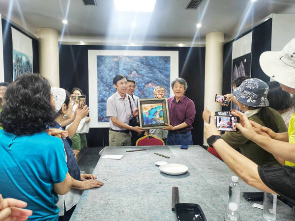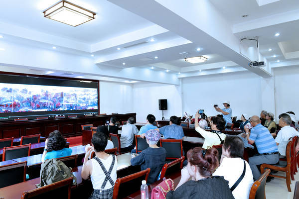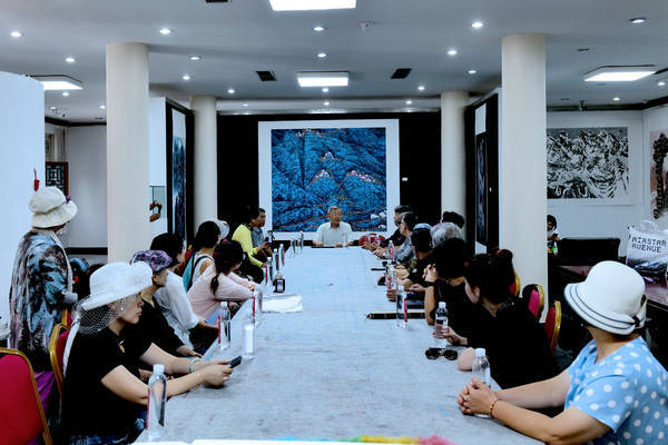 上午十时许,李荣根先生率韩中书画艺术代表团参观了金京模艺术馆的“众山皆响”“妙造自然”“拟幻入真”三个主题展览,随后来到盛达集团会议室观看了金京模《中华江山图》的视频宣传片并进行交流,与会参观者无一不为地质学家及作家身份的大师绘画艺术深感震撼!守正创新的以线造型,以笔墨透视和地理探索为特征的地貌文脉视像探源是开世界绘画艺术史先河的文化工程,其国家首卷地质、地形、地貌肌理并系统描绘中华大美江山的史诗级巨献尚属首次。韩中艺术代表团画家们在交流中认为:”西方有毕加索,东方有昆仑山人(金京模),昆仑山人给山体加进了灵魂。”这是第五批次韩国书画代表团参观北京金京模艺术馆和中华江山图画作的共同想法和观点,昆仑山人给亿万年岩石圈加入灵魂,超越了当今山水画。随着《中华江山图》的跨国界的传播,韩国艺术代表团的提法,一定会在西方文化界中受到广泛的欢迎!