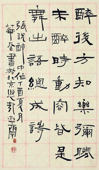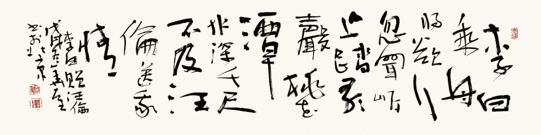 华奎书法,遍临法帖,不囿陈法,画意入书,一字一奇,常变常新,件件皆为书法艺术创作。题额、题签、题联不少,每每出其不意,变幻莫测,传统功夫深厚,时代个性风格鲜明,永无定格。