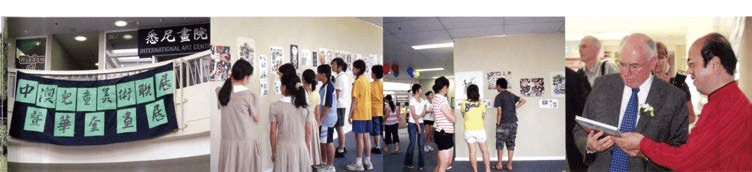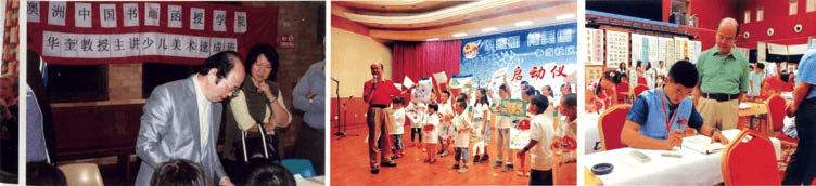 华奎在澳大利亚麦科理大学讲学、2004 年在悉尼举办华奎书画篆刻展览、2014 年华奎在瑞典办展讲学