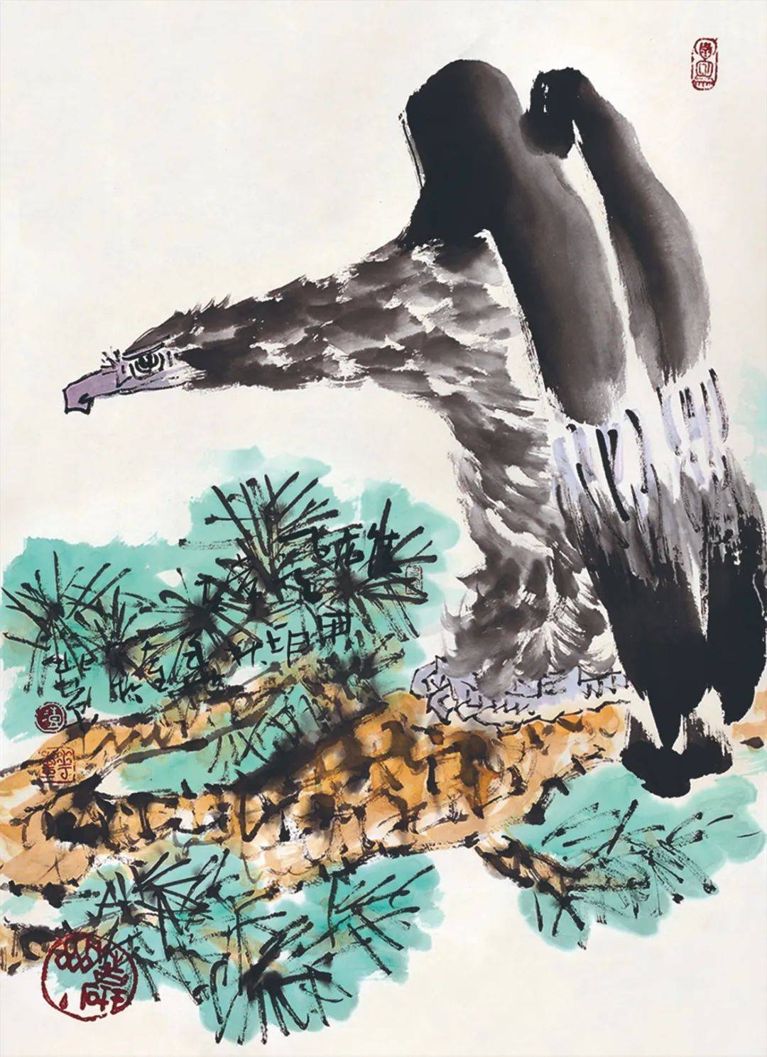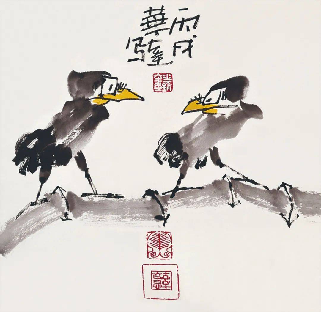 华奎先生的画,无疑属于文人画的范畴。这是由于与当下绝大多数画家不同,他是大学中文系出身,本来就是文人,然后进入画坛。而在数十年的从艺生涯中,他并没有被流行的游戏规则束缚,一直凭借自身文化优势和自由个性,穿梭进出于多个领域,而且在同一领域中,题材风貌也各不相同,如绘画则人物、山水、花鸟俱擅,书法则篆、隶、真、草兼能,金石则工写肖形齐治,此外还从事美术教育和美术活动。至于表现技法方面,他也不为一家一派的成法所囿,而是在博采众长的基础上自出机杼,形成一种简练豪放、纵逸不羁,颇富文化意味的个人风格,在画坛可谓独树一帜。应当特别指出的是,他从事的虽然是中国画创作,却不固步自封,而是有选择地吸取西洋当代艺术的某些意念,使之有机地揉合进自身的创作中,因而他的作品具有一种既源于传统,又有别于传统的“现代性”,不仅中国人读来感到亲切,同时也获得外国观众的广泛喜爱。由于这是当代中国美术界一个尚待解决的课题,因此尤其难能可贵。