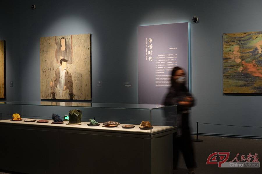 展览第三单元为“体悟时代”。当今世界面临着各种机遇和挑战,不同文明之间既可以交融,也不可避免地出现冲突。中国自古以来便有自我更新、海纳百川、兼容并蓄的思想底蕴。袁小楼以自我回归历史现场的艺术化处理,用绘画表达了他以中国传统思想解答当代困境的思维方式,同时也以此展现中国传统思想的当代价值。(摄影 曹梦玥/人民画报)