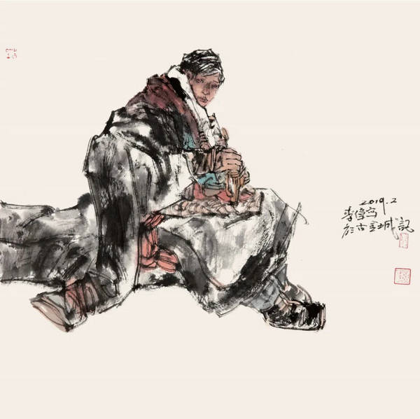 我觉得一个人物画家的审美更多是反映在造型与笔墨的处理上,尤其是人物画的写生,造型与笔墨的完美结合更能反映出画家的笔墨修养。都说艺术源于生活,在写生中寻找的是真切的感受,这种感受在你的作品中是非常珍贵的。人物画的写生不是对客观物象的照搬,不是对人物形象的描摹,它是观察分析后的感悟的表达,画的是对客观对象的一种感受,笔墨和形式都是在这个过程中的梳理、归纳、概括和提炼,不断地从写生的过程中去发现创造存在于生活中的笔墨元素而形成完整的笔墨形象和图式,这才是人物画写生的目的。