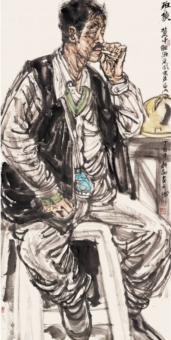今天来到画院后,我先到一楼美术馆进行了观摩学习,很受启发。写生作品和工笔画创作不太一样,写生作品更加鲜活,和我平时的工笔创作不一样。自从到画院后,我也一直在学习写意人物,写意人物需要持久关注传统,因为深厚的传统功底是至关重要的。深入钻研传统技法和文化内涵,能让自己的作品扎根于悠久的文化土壤,为作品注入根与魂。这几年我随单位经常在外写生,有诸多体会,写生能够让作品非常生动,有气韵,不同于工笔创作。近几年我的主题性创作项目《使命》《筑梦》等人物造型都是来源于写生,写生能够真实地捕捉到人物的形态、神韵和情感,创作《使命》前我积累了大量消防人员形象的写生和创作,今年创作的《筑梦》同样,我多次深入工地采风写生。我认为,写生不仅要去关注人物的生活状态,更主要的是关注他们的情感,去捕捉那些瞬间的情感表达和生动的姿态,既包括生活的幸福感、对生活的憧憬,也要去表现他们生活的苦涩、生活背后的沉重,这样创作的人物画才能触动观众内心,引发共鸣。六位画家的这些写生作品非常精彩,尤其在人物画追求当代性上提供了很好的范例,在构成感、题款、钤印等方面有不少创新之处,都体现了当前水墨人物画的创作高度,值得学习借鉴。